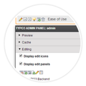 While the backend offers complete control over all site content, TYPO3 also includes a frontend editing interface for even faster, more intuitive content management by non-technical editors.